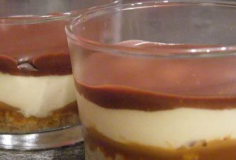 Déposer un peu de cette préparation au fond de chaque verrine. Tasser du bout des doigts et réserver au frais.