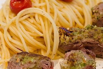 De belles tranches de filet de bœuf de chez Jack O’Shea, un bon parmesan, une panure à base de restes de focaccia à l’huile d’olive, une belle tomate de fin de saison… les ingrédients sont là pour réaliser ces délicieuses paupiettes de bœuf montées en brochettes. La farce est fondant, parfumée, sicilienne, répondant parfaitement à la puissance de cet excellent bœuf Angus (j’ai hésité à prendre du veau, j’ai fait le bon choix!). Un régal!