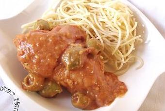 Dans un peu d’huile faire revenir l’ail émincé. Ajouter la sauce tomate et les olives.