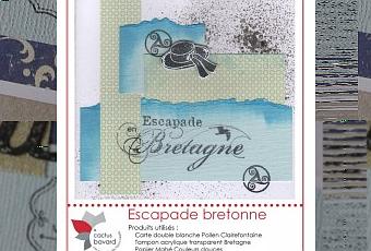 J’ai ensuite collé mes papiers en les mêlant les uns les autres pour donner cette impression de superposition. Ensuite, place au décor avec les tampons Bretagne ! Super, voici une carte originale à envoyer pour inviter de la famille ou des amis pour une sortie bretonne.