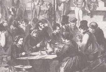 L’avènement du machinisme dirige vers Paris et vers les grandes villes un afflux de population qui favorise la prolifération des restaurants à bon marché. Sous le Second Empire, la Table d’hôte, 84 rue Montmartre, offre pour 1 Franc 50 un repas comportant : potage, quatre plats, salade, dessert, un carafon de vin et pain à volonté.