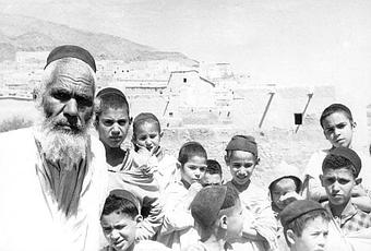lsaac Asséraf, cheikh de la communauté d'Akka, avec un groupe d'élèves (1956).
