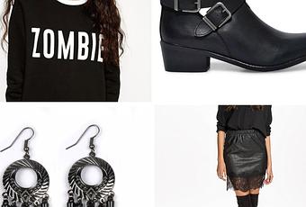 Sweat shirt SHEINSIDE • Bottines ERAM Boucles d’oreille MOA • Jupe en similicuir et dentelle NELLY