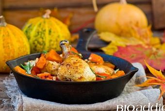 Recette bio : Tajine d'automne : poulet, potiron & pruneaux