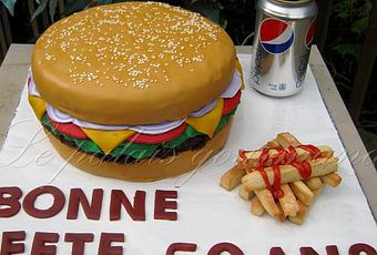 Mon chum fête ses 50 ans aujourd'hui même et pour l'occasion je lui ai réalisé ce superbe burger version sucré. Disons que j'avais plusieurs options de gâteau et c'était assez difficile à choisir...s'il en tenait qu'à moi, j'aurais fait 3-4 gâteaux mais bon ça aurait pris pas mal de monde pour tout les manger, hihihi.