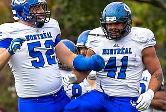 - Et on termine l'attaque avec notre #5 P. Enchill qui se découvre bien et échappe très peu de ballons , mais également ses bloc clés qu'il effectue à profusion. Sa passe de touché nous a rappelé le même jeu, qu'il a avait également exécuté avec succès, il y a trois ans au CEPSUM contre le RetO.- L'OL #64 G. Sylvestre (bicep), et RV #6 A. Ndao (cheville) n'étaient pas sur l'alignement. Le demi de coin #38 Jordan R. n'y était pas non plus, mais c'était plutôt pour une raison punitive (suite au match contre Sherby). Durant la partie, #66 M. Laliberté (une autre belle histoire de notre oline cette année) est tombé au combat avec une blessure au genou.