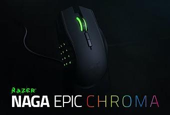Razer a annoncé la gamme Razer Chroma à la Gamescom de Cologne cet été. La Naga Epic Chroma rejoint le BlackWidow Chroma, le Kraken 7.1 Chroma et la DeathAdder Chroma, qui proposent de choisir 16.8 millions de couleurs et des effets de lumière via Razer Synapse. Synapse permet de synchroniser les couleurs et effets entre les différents périphériques en un clic.