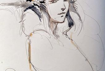 Pour sa dédicace, Jean Bastide est parti sur un crayonné très rapide pour placer des volumes et puis, avec dextérité, il a donné vie au visage de la demoiselle.