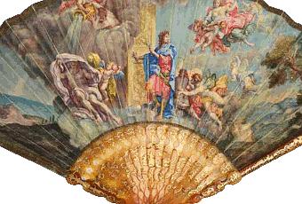sculptés et gravés, incrustés dont des bustes, des personnages, des griffons. Les panaches sont bordés d’une ligne de pointillés en piqué d’or. » Vente Éventails - Dentelles du mercredi 5 novembre de la maison Coutau-Bégarie à Richelieu - Drouot.