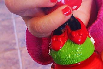 Et aujourd'hui elle m'a sorti son plus beau vernis, celui de Minnie Mouse, non toxique et la bouteille est juste trop belle!