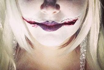Etape 3: Se recouvrir de blanc à l'éponge. Mettre du noir autour des yeux, mettre du noir sur les lèvres et aussi dans le Chelsea Smile (et dans les fausses brulures) et appliquer les faux cils.