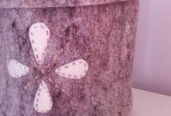Ma création est finie, un joli pot tout rond, en feutre de pure laine, a trouvé sa place dans la maison !