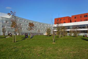 par un bel après-midi d'automne au milieu de paris 8 devant la maison de l'étudiant food truck sushi hallal le restau u, qu'on appelle désormais la cafète y a de la verdure aussi, au fond c'est le bâtiment dans lequel je vais station saint denis-université, le bout de la mythique ligne 13