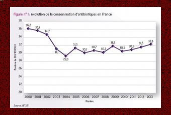 Face à un nombre croissant de situations d’impasses thérapeutiques contre des infections bactériennes, face à l’émergence des antibiorésistances, le Ministère de la santé avait lancé, fin 2011, son Plan national d’alerte sur les antibiotiques « 2011-2016 », avec le souhait de mettre en œuvre de nouvelles règles de prescription et de contrôle. Un plan vain puisque ces nouvelles données placent toujours la France parmi les pays européens où la consommation des antibiotiques reste très élevée, avec plus de 140 millions de boîtes vendues chaque année, représentant 4% de la consommation de médicaments 2013. Ainsi, la consommation d’antibiotiques confirme son augmentation depuis 2010. Chaque Français en consomme aujourd’hui plus de 2 boîtes par an.