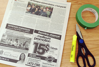 du papier (j’ai choisi d’utiliser du papier journal : on en a tous chez soi et ca finit toujours au recyclage)