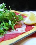 Présenter la viande joliment en rosace dans l'assiette nappée d'un peu d'huile d'olive.