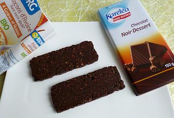 Ces barres diététiques maison sont très rassasiantes.... d'une part, grâce aux céréales complètes et d'autre part, grâce à la richesse en fibres du chocolat....
