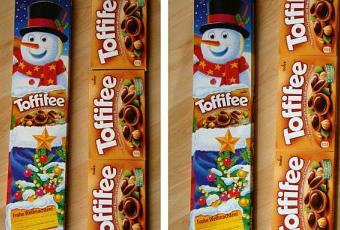 Lors de sa dernière visite, sisteroth67 m’a apporté cette boîte géante spécial noël de Toffifee !
