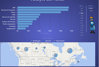Par la suite, en supposant que le deuxième niveau de forage soit les provinces, l’utilisateur pourra observer les ventes de ERP par province (toujours pour la période de temps sélectionnée).