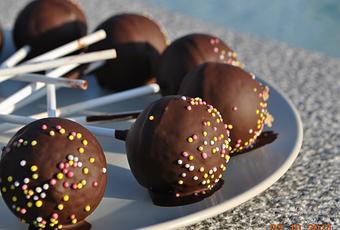 - Laissez refroidir. Trempez les bâtonnets dans du chocolat fondu et en enfoncez en un dans chaque boule. Mettez au réfrigérateur pendant 30 minutes.