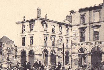 En me dirigeant, le matin, vers le quartier Saint-André, je vois, en débouchant de la rue des Élus, un véritable sauve-qui-peut sur la place des Marchés, où il y a beaucoup de monde, aujourd'hui mercredi ; il est 8 h 20, un obus vient d'éclater rue Pluche.