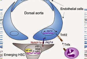 Au cours de la phase précoce de développement, les neutrophiles primitifs relâchent le TNFα pour l'activation des voies de signalisation Notch et NFκB dans l'endothélium aortique, requises pour la spéciation des cellules souches hématopoïétiques (HSC). Ces découvertes indiquent que la signalisation pro-inflammatoire, en l'absence d'infection, soumet l'apparition des cellules HSC à régulation.