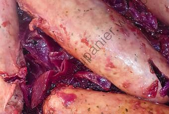 Nettoyer le chou rouge et le couper en lamelles. Ajouter aux oignons. Bien remuer.