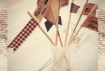 Mais revenons-en à ces étiquettes kraft ! Pour accompagner mon goûter cupcake, j’ai pris quelques minutes pour confectionner ces jolis petits fanions décoratifs. Grâce à une feuille de papier kraft, des bâtonnets à brochettes, un feutre noir et quelques rouleaux de masking tape, vous mettrez un peu de tendresse dans votre intérieur. Une idée de DIY sur le pouce et l’occasion de décorer vos gâteaux, vos bouquets de fleurs ou encore de laisser de doux messages à votre moitié…