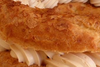 Versez le mélange au caramel dans le bol du robot et fouettez pour alléger la préparation. Versez dans une poche munie d'une douille cannelée. Coupez la couronne en deux dans le sens de l'épaisseur et pochez la crème. Remettez le chapeau de pâte. Réservez au frais.