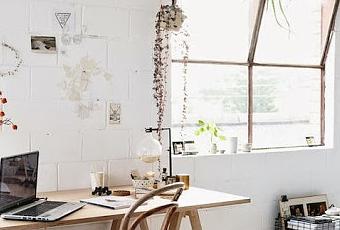 Je me verrais bien assisse devant ce bureau tout simple, une planche de bois et deux tréteaux, quelques plantes, des casiers en métal ... rien de très compliqué pour avoir une belle ambiance.