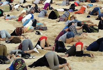Des centaines de manifestants, hommes, femmes, enfants, ont investi une plage en Australie pour exprimer leur colère face à l’échec de Tony Abott (leur premier ministre), à lutter contre le réchauffement climatique, à l’approche du G20 de ce week-end.