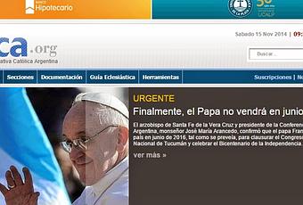 En décembre de l'année dernière, la joie avait été grande lorsque l'équipe de football du Club San Lorenzo de Almagro avait annoncé la venue du Saint Père en Argentine, à Tucumán, en juin ou juillet 2016, pour le Bicentenaire de l'Indépendance du pays. C'était à l'issue d'une audience au Vatican après la victoire historique du Club à la Copa Libertadores (voir mon article du 13 décembre 2013 à ce sujet).Hélas, la déception est grande. L'information n'avait jamais été confirmée par le Vatican et il y a un mois, la Conférence épiscopale d'Argentine avait fait savoir que le Pape lui annoncerait en novembre s'il pouvait maintenir ou non ce voyage. La nouvelle est tombée hier : il n'y aura pas de visite pontificale en Argentine de toute l'année 2016, l'agenda du Saint-Père ne le permet pas, et aucune date n'a été fixée pour les années suivantes.