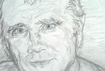 Dessin monochrome et pourtant son regard azuré crève la page de toute sa couleur