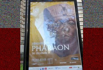 Après avoir découvert une première figuration de Sésostris III (BM EA 686) au bas de l'escalier menant à l'exposition qui lui est consacrée au Palais des Beaux-Arts de Lille dans lequel nous déambulons, vous et moi, amis visiteurs, depuis le 4 novembre dernier, et nous être posé l'une ou l'autre question quant à la statuaire royale égyptienne de cette partie de la XIIème dynastie, nous nous sommes avancés vers l'oeil électronique qui déclencha l'ouverture de la porte coulissante sur notre droite : enfin, nous pénétrions dans l'espace muséal proprement dit et, d'emblée, étions accueillis par le prestigieux hôte de ces lieux, dont la magnifique tête en quartzite, actuellement la propriété du Nelson-Atkins Museum of Art (Inventaire n° 62-11), de Kansas City, s'affiche, tronquée plus souvent qu'entière, tant sur les murs des couloirs du métro parisien, que dans les rues de Lille, habillée de jour comme de nuit,