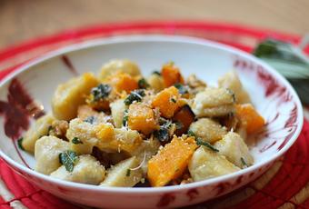 Ca faisait quelques temps que j'avais envie de me lancer dans la préparation de cette recette. Mister G. a eu en cadeau à Noël dernier un très beau livre de recettes veggie* et je salivais d'avance... parce que le beurre de sauge et moi, c'est une histoire d'amour depuis 2013 et mon escapade dans le nord de l'Italie (et la pasta de l'Agriturismo di Spettine à Bettola, mamamia!!)Mais il fallait attendre:1/ que ça soit la saison des butternuts et autres curcubitacées2/ que j'ai le courage de m'attaquer à la préparation de gnocchi qui, malgré leur air de "moi ? attends, je suis pas compliqué, juste un petit boudin de pâte de pomme de terre poché, trois fois rien" me semblaient pourtant un peu fourbes...