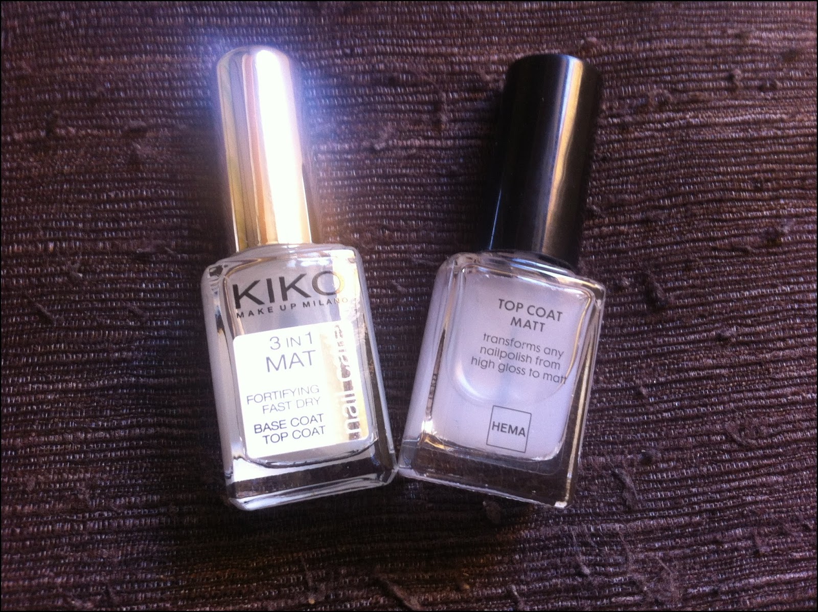 J'ai voulu tester l'effet mat d'un top coat sur un vernis laqué mais je n'ai pour l'instant, pas eu le temps de m'y atteler. J'espère très prochainement pouvoir m'y mettre :)