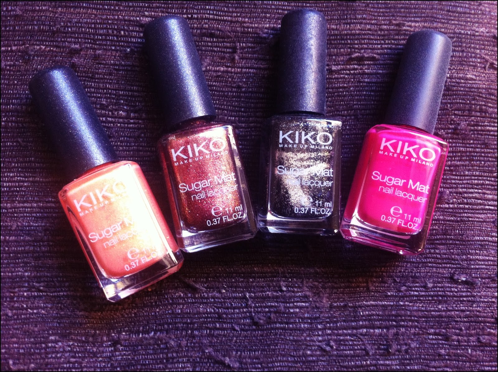 Ayant eu un gros coup de coeur pour les vernis à effet sugar mat de chez KIKO, j'ai agrandi ma collection de 4 nouvelles teintes :)