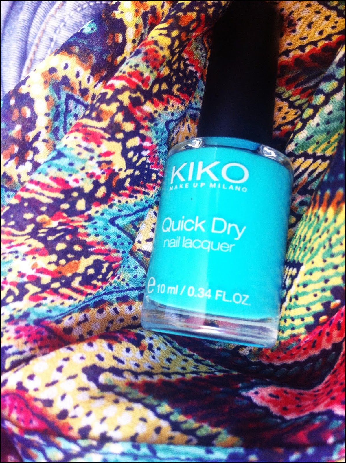 Bah faut dire que déjà que je suis fan des vernis KIKO qui, je trouve, sèchent particulièrement vite mais que si en plus on t'en promet plein d'autres qui sèchent encore plus vite, je ne vois pas comment tu peux résister quoi. Je me suis donc tournée vers la teinte 835, un vert d'eau laqué qui m'a tout de suite attiré.