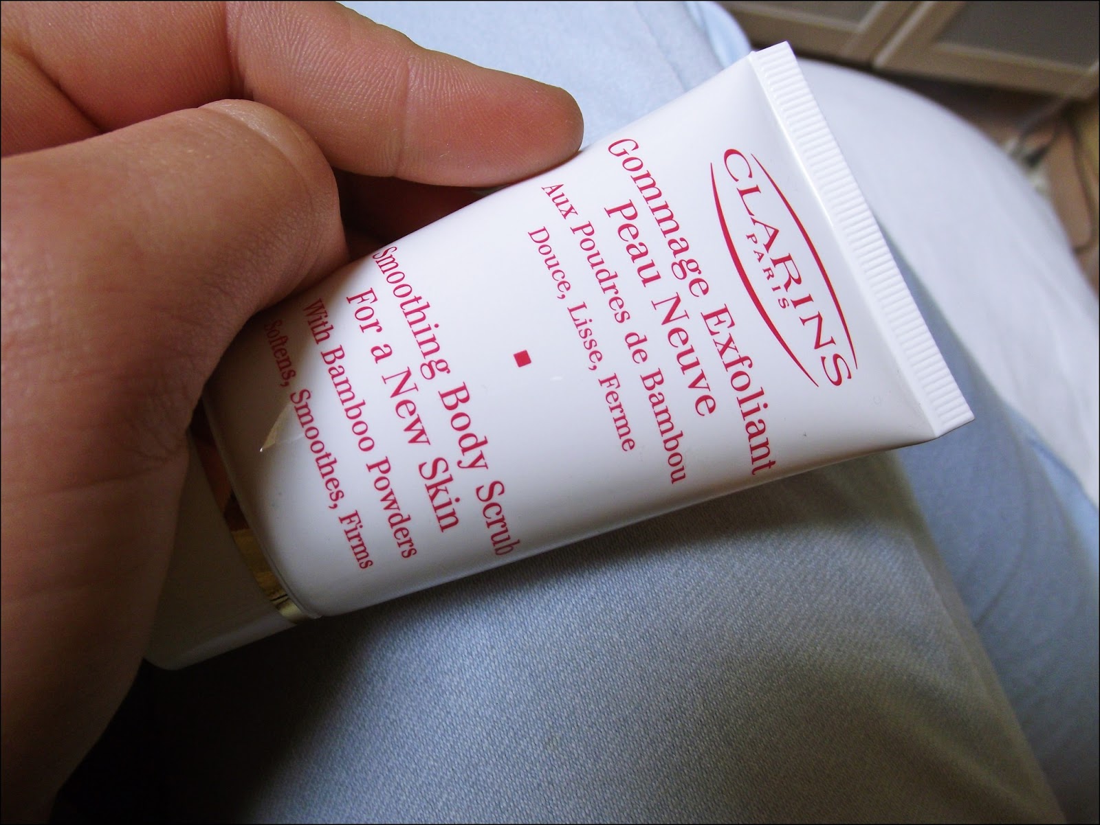 Ce soir j',vais vous parler d'un petit produit que j'ai eu en échantillon en achetant le Glamour d'il y a quelques semaines c'est donc le Gommage exfoliant peau neuve aux poudres de bambou de Clarins. J'aime beaucoup cette marque, je suis fan de leur mascara alors je me disais que ça ne pouvait être qu'un bon produit.