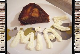 gâteau: 100 g de beurre, 100 g de sucre de canne, 75 g de mélasse, 2 oeufs, 2 cuil à café de gingembre moulu, 175 g de farine complète, 1 cuil à café de bicarbonate de soude