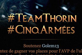 Dès le jeudi 20 novembre, les fans de mon petit blog devront s’enrôler dans mon armée : Le Team Thorin. Rejoignez moi sur @Golem_13 et tweetez ces deux hashtags sur un même tweet #TeamThorin #CinqArmées