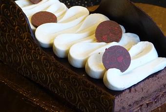 Après le macaron, voici un peu de chocolat: une bûche forêt noire. Alors ne vous attendez pas quand même à déguster une vraie forêt noire traditionnelle. En effet, il n'y a pas de kirsch notemment et les griottes sont remplacées par un confit de griottes.