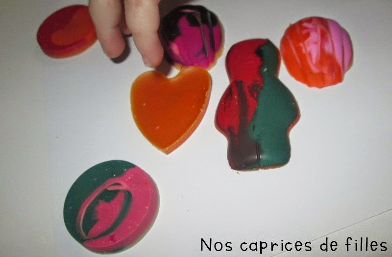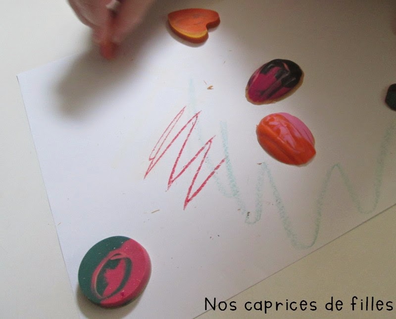 Avant de pouvoir les utiliser il faut attendre qu'elles durcissent (vu que Lola avait attendu devant le four 20 minutes s'était compliqué pour elle de ne pas pouvoir les utiliser aussitôt) Quelques minutes plus tard on a était cherché les craies et Lola était vraiment trop contente, elle me les a même réclamé quand on faisait un dessin quelques jours après. Je recommencerai surement mais je penserai avant a ouvrir les fenêtres pour éviter l'odeur.Pour nous suivre sur facebook c'est par ici :