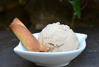 Verser ensuite la préparation dans la sorbetière et laisser turbiner jusqu’à l’obtention de la consistance désirée.