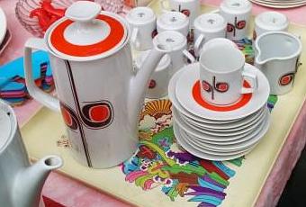 Divers meubles d’école, une enseigne de station de bus, des couvertures au crochet …