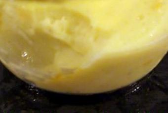 Fouettez les jaunes d'oeufs avec le sucre jusqu'à se que le mélange blanchisse,puis ajoutez les zestes d'orange hachés .