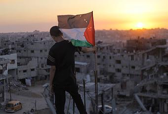 Un jeune palestinien face à sa maison en ruines, suite aux attaques israéliennes, le 19 septembre 2014.