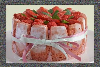 Dans un moule à charlotte, trempez chaque biscuit dans un peu d’eau sucrée (avec du sirpo de fraise) et tapissez les bords du moule. Mettre de la préparation, puis mettez au frais au moins 6 heures.