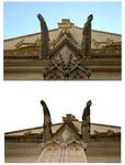 Elle montre deux gargouilles du palais de Justice de Rouen (façade donnant sur la rue St Lô) fraichement restaurées à la peau éclatante.