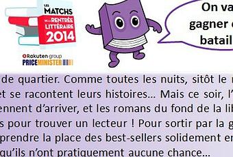 "Les matchs de la rentrée littéraire 2014"... Cette année encore je participe à l'événement, version 2014, plutôt sympa organisé par PriceMinister. Le principe n'a pas changé : une fois par an les bloggeurs peuvent s'inscrire (dans la limite des places dispos) et choisir un bouquin parmi une liste imposée. Ils le reçoivent ensuite en cadeau, et ils en publient la critique sur leur blog.
